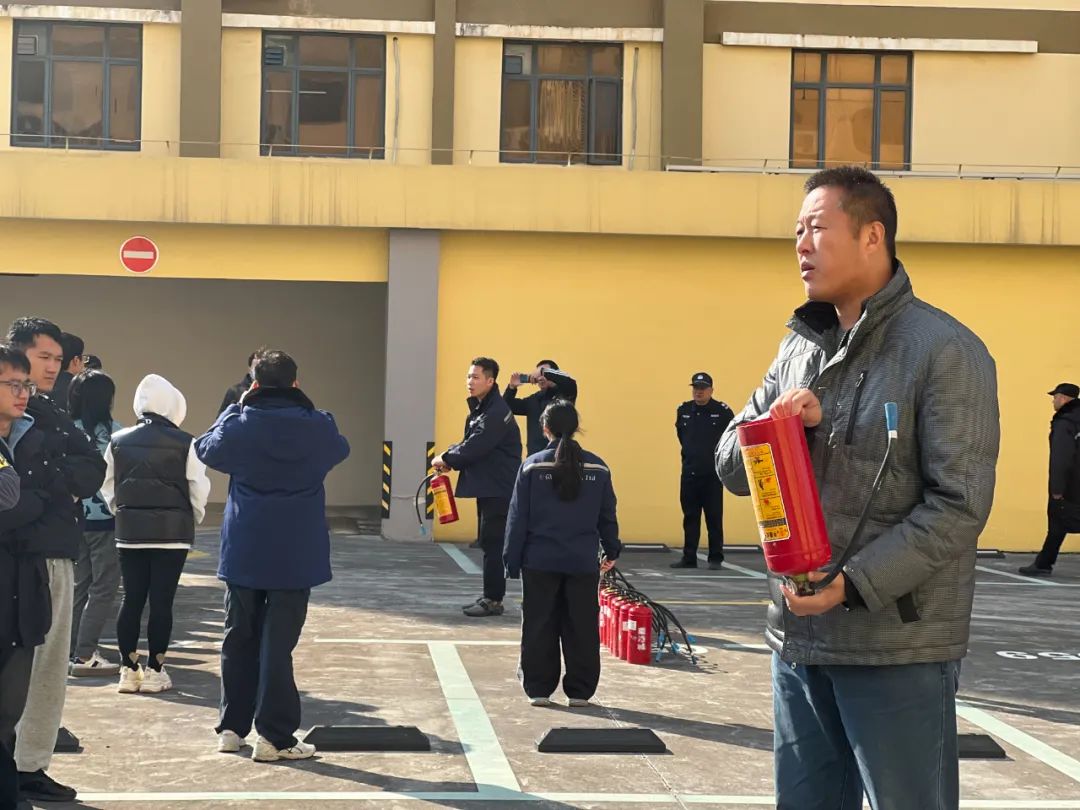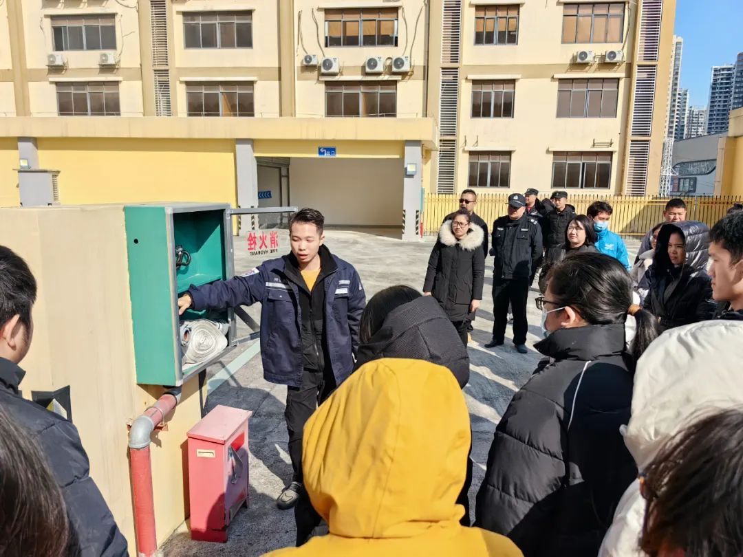 ▲現(xiàn)場(chǎng)學(xué)習(xí)滅火器及消防水帶的使用方法