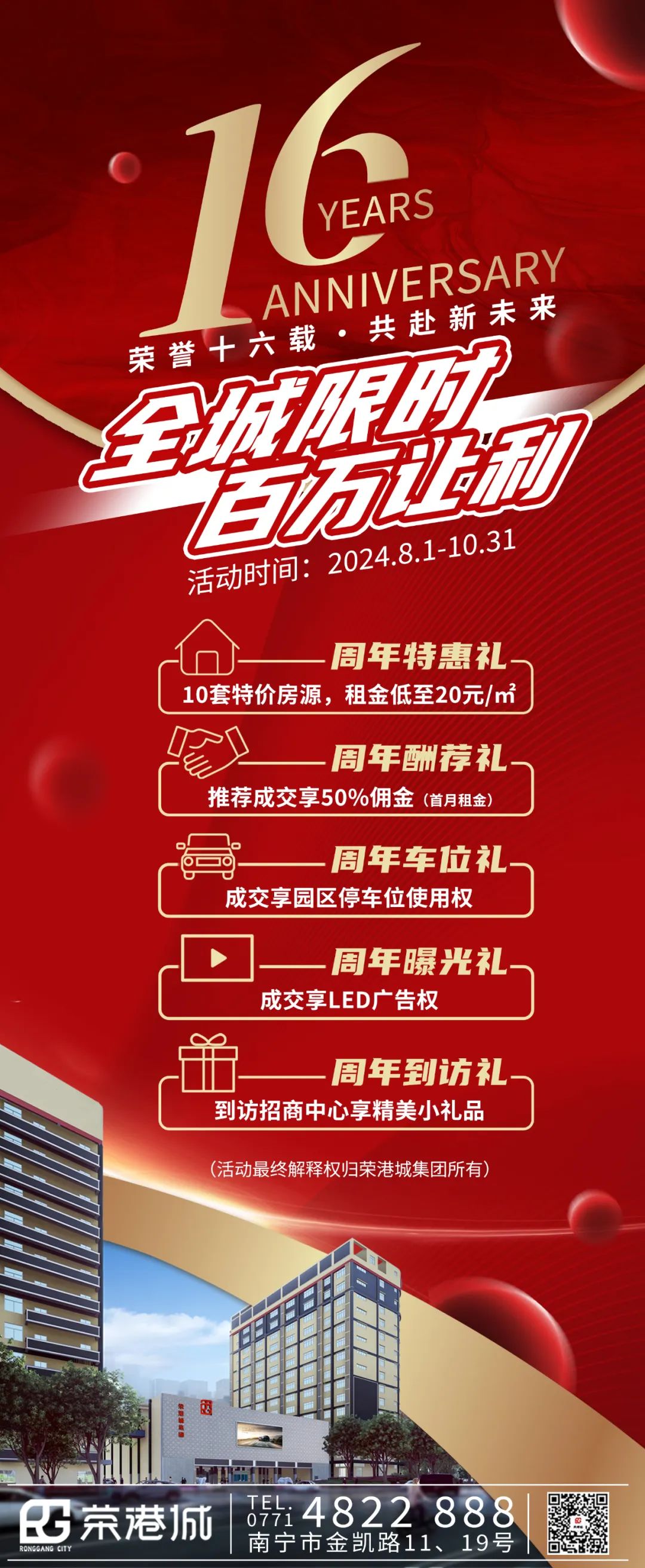 活動(dòng)現(xiàn)場,來訪人員絡(luò)繹不絕,中國聯(lián)通南寧市分公司現(xiàn)場為客戶手機(jī)進(jìn)行免費(fèi)清洗、貼膜、贈(zèng)送禮品等,并推出特惠專屬套餐,為園區(qū)客戶提供了實(shí)實(shí)在在的優(yōu)惠與便利;為感恩回饋廣大客戶,榮港城16周年慶期間,還特別推出10套特價(jià)房源、推薦傭金、免費(fèi)車位、免費(fèi)LED廣告、到訪送好禮等福利,以此感謝廣大客戶對(duì)榮港城的信任和支持。