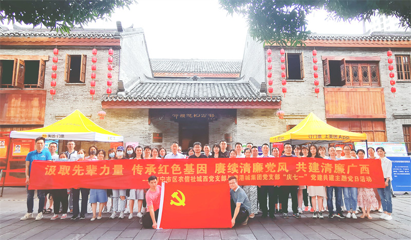 為緬懷革命先烈,傳承紅色基因,賡續(xù)紅色血脈,在七一建黨節(jié)到來之際,廣西榮港城發(fā)展集團有限公司黨支部與南寧市區(qū)農(nóng)信社城西黨支部以“我們的節(jié)日——建黨節(jié)”為契機,一同來到鄧穎超紀念館開展以“汲取先輩力量、傳承紅色基因、賡續(xù)清廉黨風(fēng)、共建清廉廣西”為主題的黨建聯(lián)建黨日活動。